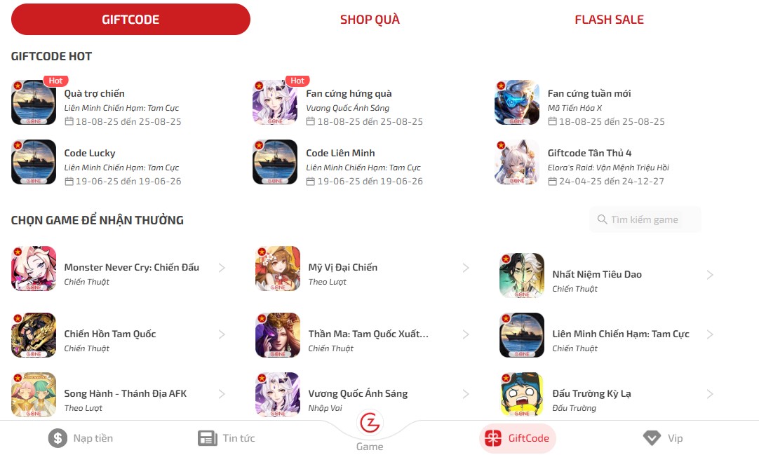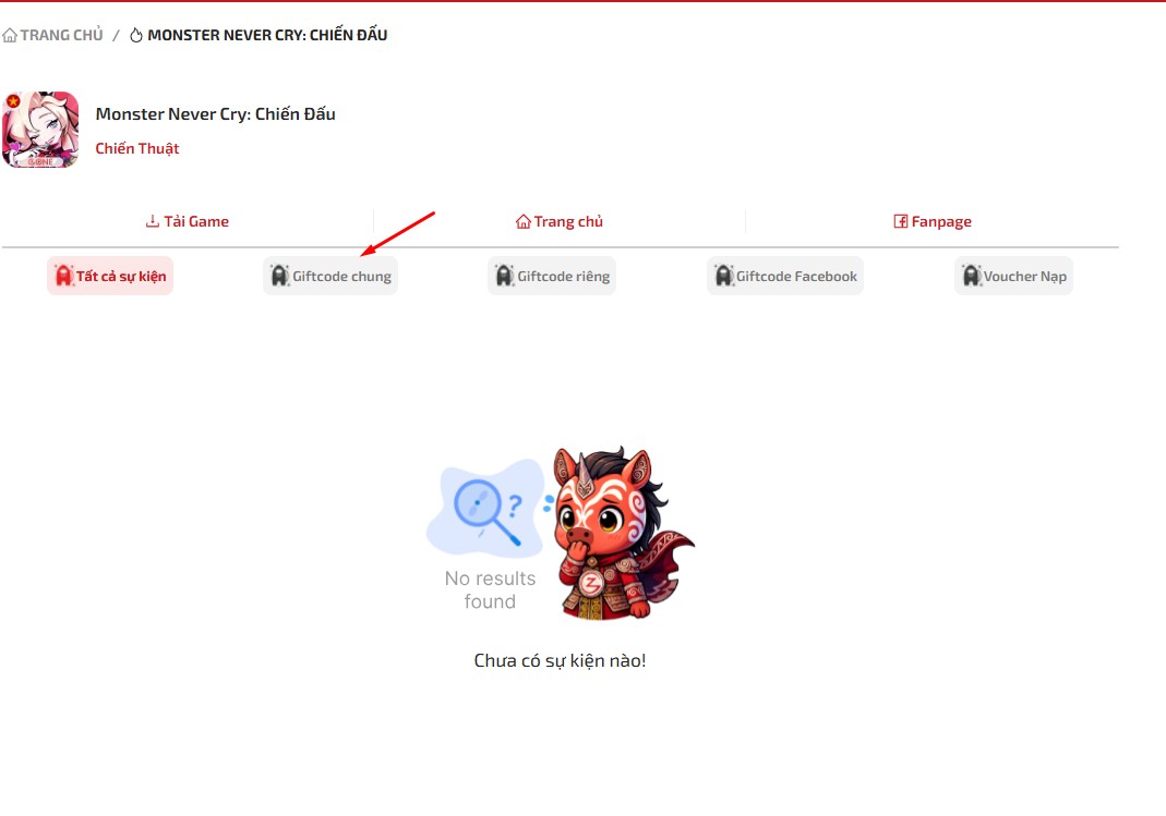 Bước 1: Người chơi vào trang https://zoneplay.vn/care & chọn game Monster Never Cry: Chiến Đấu!